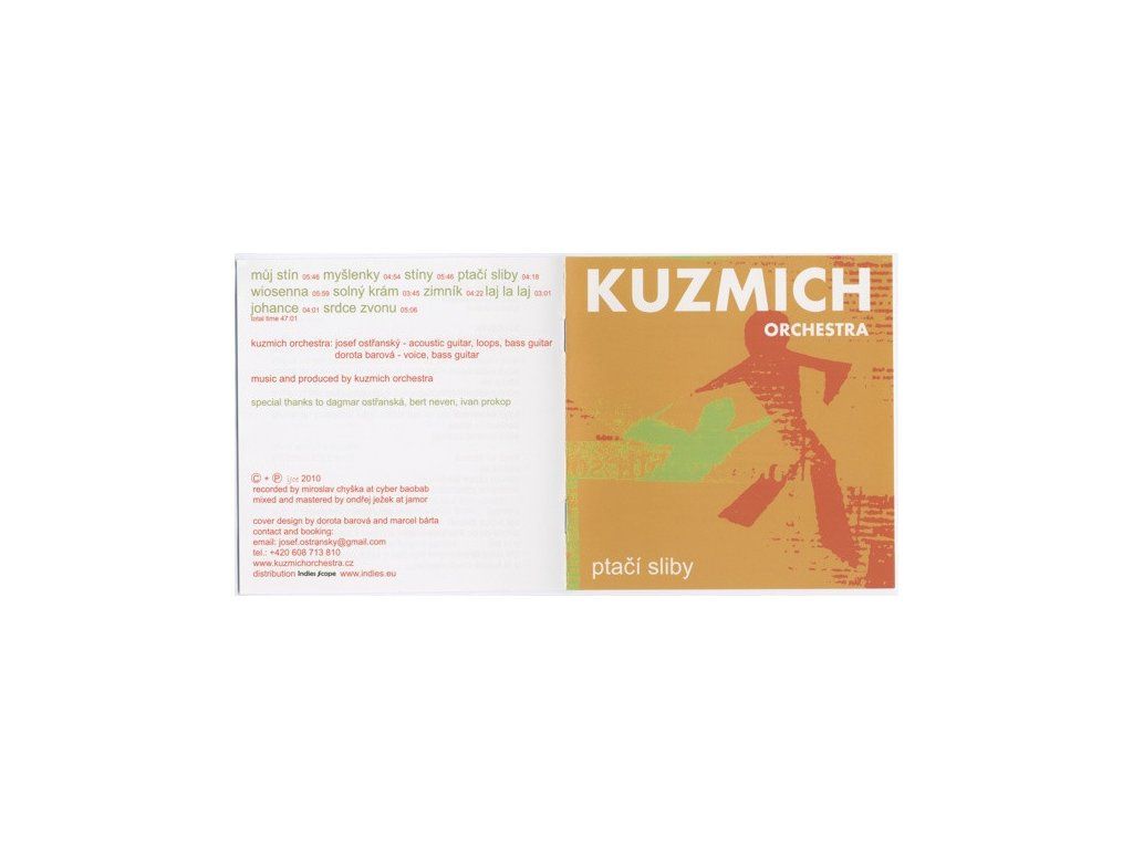 Debutové album Ptačí sliby představuje nový hudební projekt Kuzmich Orchestra dvou výrazných postav české alternativní scény. Dorota Barová a Josef Ostřanský mají za sebou bohatou hudební kariéru v různých hudebních seskupeních. Dorota Barová např. v Tara Fuki, Vertigo Quintetu nebo v DoMa Ensemble, kytara Josefa Ostřanského byla páteří takových legend, jako byli E, Dunaj, Rale či znovuvzkříšené BOO.